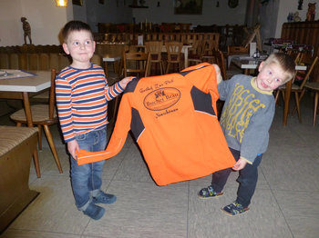 Foto 2: Die beiden jüngsten Buben Georg und Michael der FamilieSchinabeck präsentieren stolz den neuen Pullover.