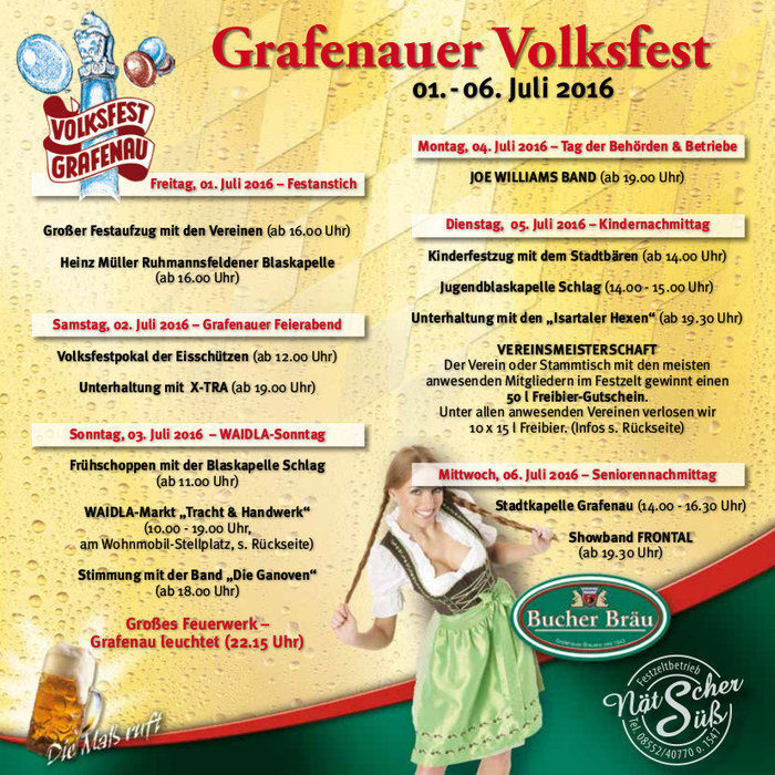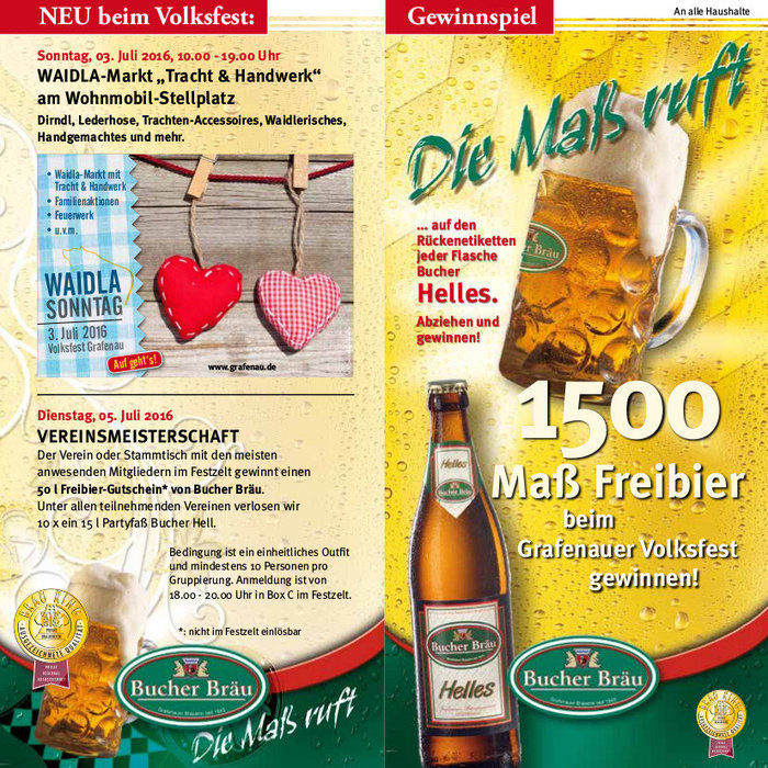 Kein Bier schmeckt so gut wie Freibier! Drum noch schnell einen Kasten Helles von Bucher Bräu besorgen und auf die Bieretiketten schauen: 1.500 Maß Freibier auf dem Grafenauer Volksfest werden über die Etiketten verlost. Nur auf den Flaschen Helles!
